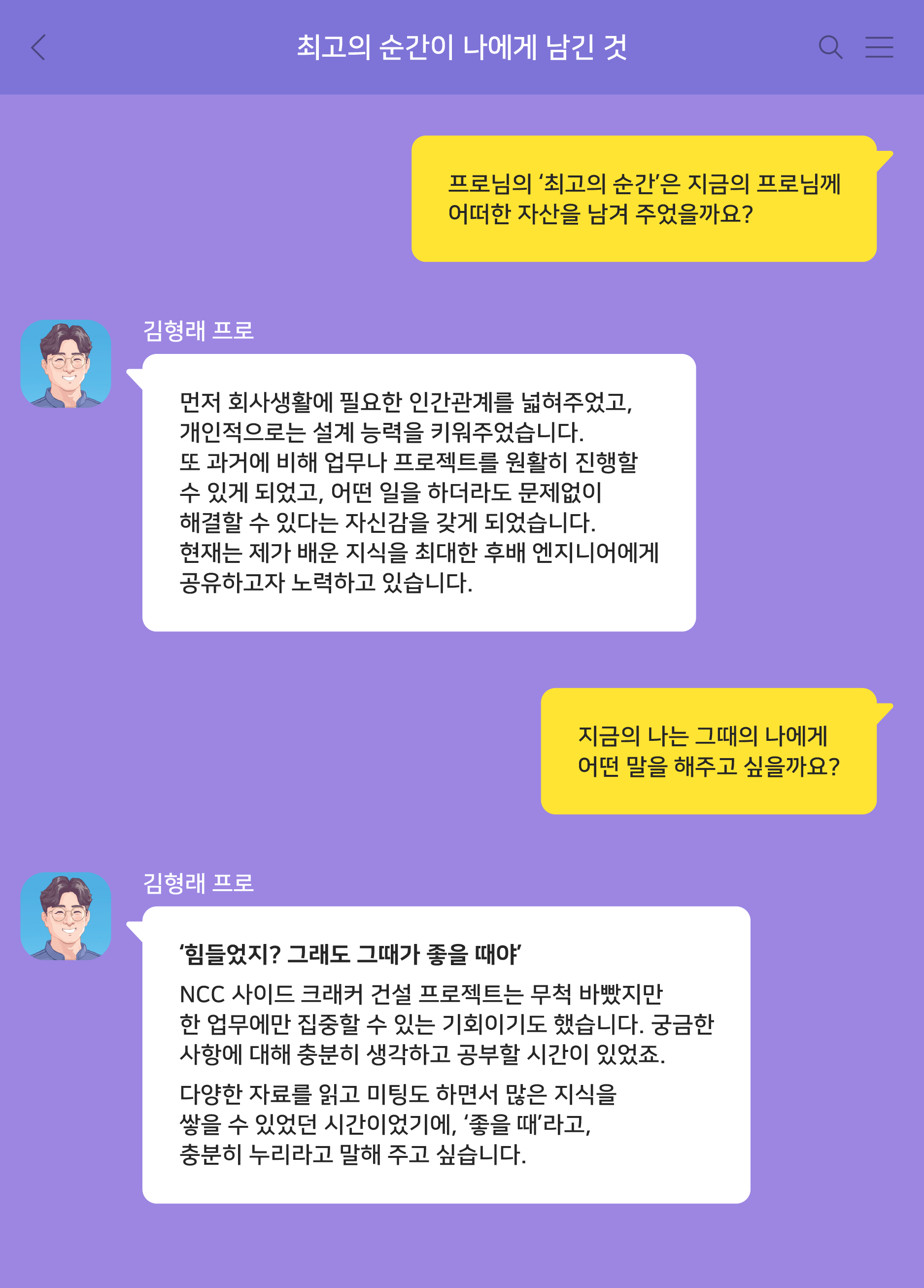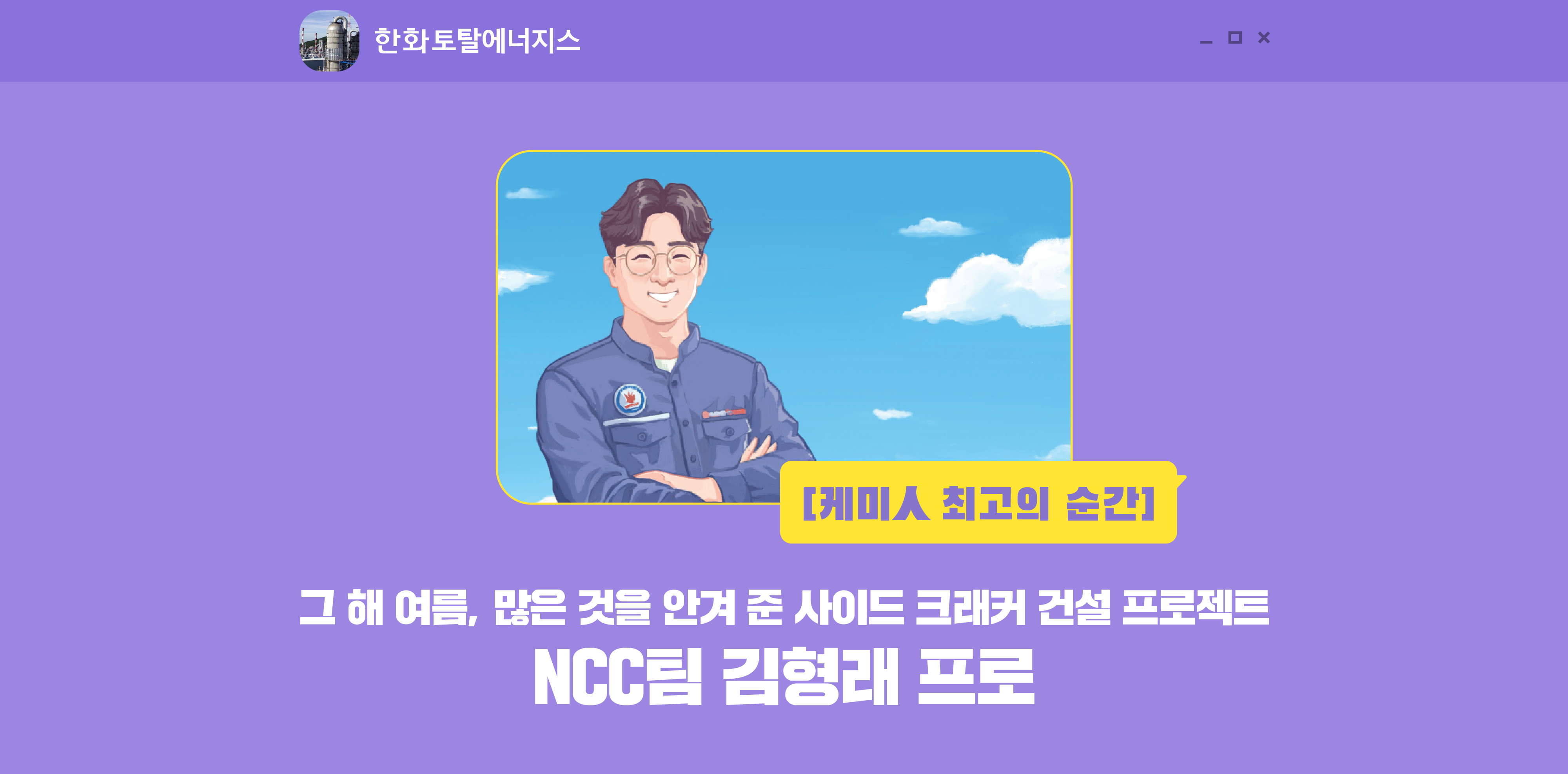 뜨거웠던 여름, 설계 능력 뿐 아니라 자신감까지 가지게 해 준 사이드 크래커 건설 프로젝트는 김형래 프로가 꼽은 한화토탈에너지스 최고의 순간이자, 한화토탈에너지스 NCC 발전의 영광이기도 했습니다. 또 다른 프로들의 최고의 순간은 언제일까요? 다음 최고의 순간으로 만나요~