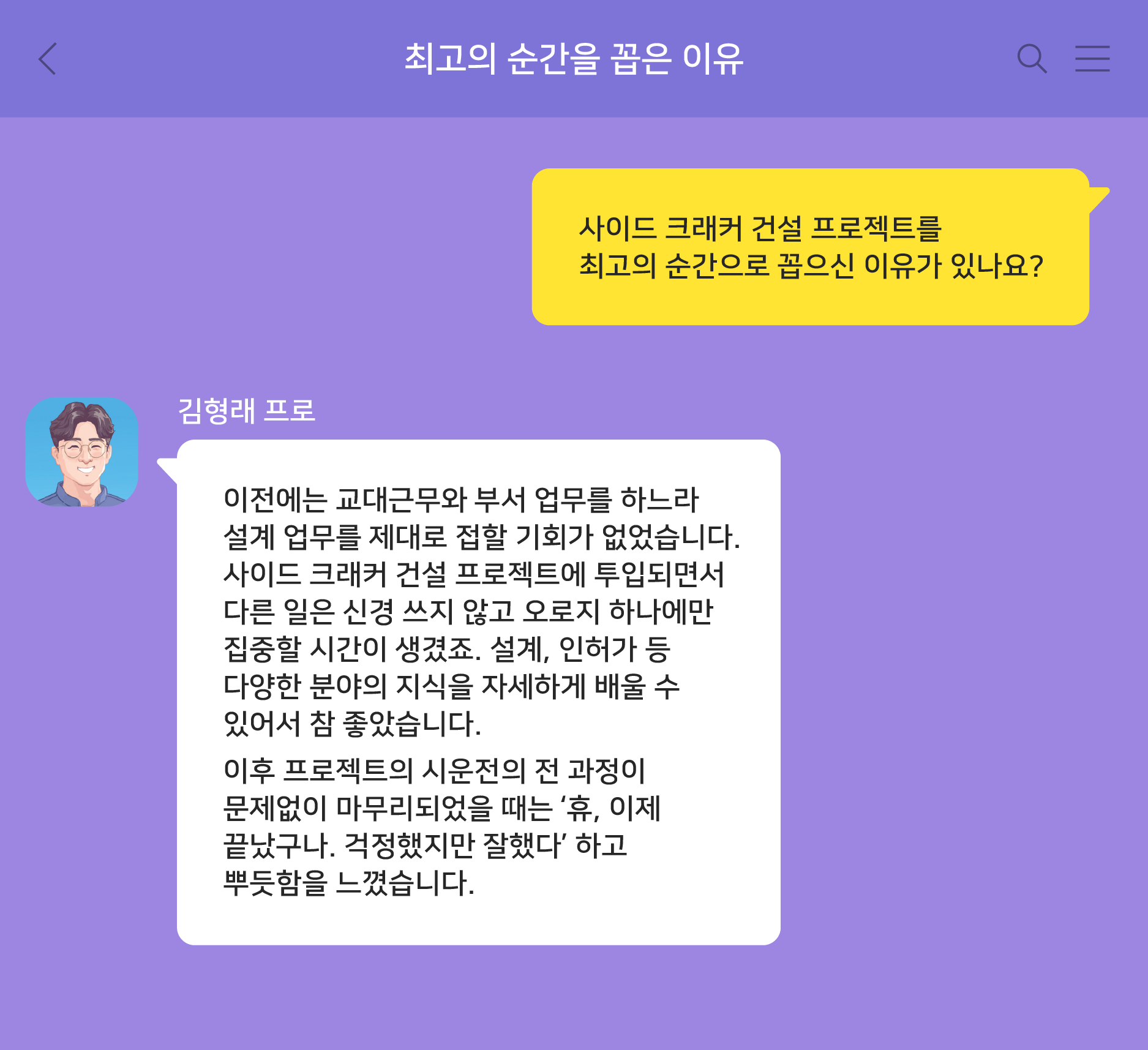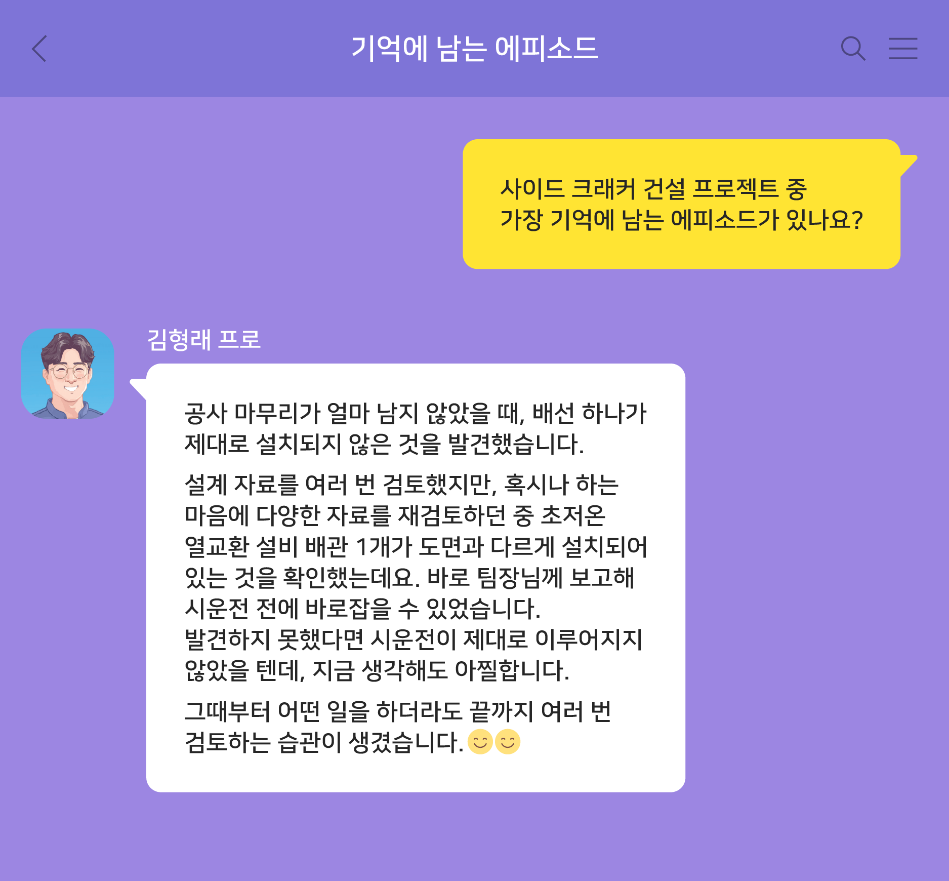 Q. 사이드 크래커 건설 프로젝트 중 가장 기억에 남는 에피소드가 있나요?