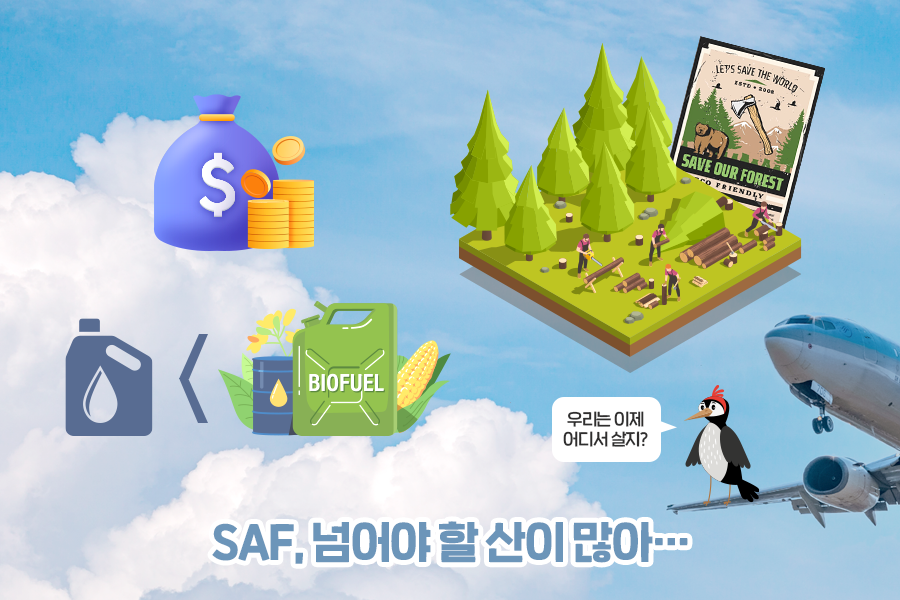 게다가 원료 수급도 문제입니다. 목재 생산을 위해 산림 벌채를 하는 경우, 또 다른 환경 훼손이 생길 수 있죠. 폐유, 식물 부산물 등의 원료는 공급이 어려워 항공유 사용량을 따라갈 수 없다는 지적이 나오고 있습니다. 해외의 많은 SAF 생산 업체들은 안정적인 원료 수급이 어려워 SAF 생산에 차질을 빚고 있는 상황입니다.