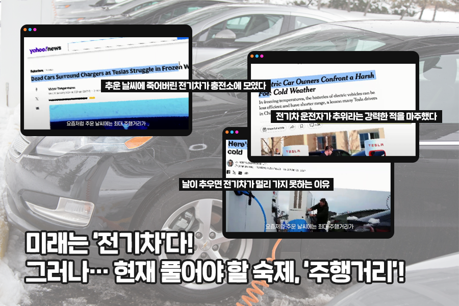 미래는 ‘전기차’다! 하지만, 현재는…? 요즘처럼 추운 겨울, 전기차는 유난히 힘을 쓰지 못합니다. 겨울철 전기차의 최대 주행거리는 10%~40%까지 줄어들게 되는데요. 전기차의 리튬이온 배터리의 전해질이 액체이기 때문에 그렇습니다. 낮은 온도에서는 전해질이 굳어져 배터리 성능이 감소하기 때문이죠.
