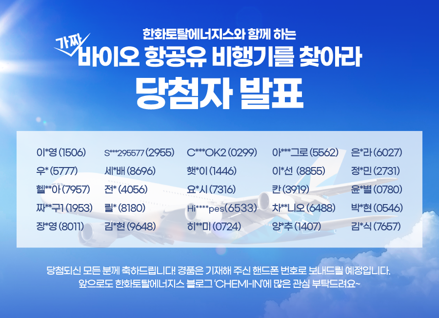 | [이벤트] 가짜 바이오 항공유 비행기를 찾아라! (722) | 2024.05.14 |