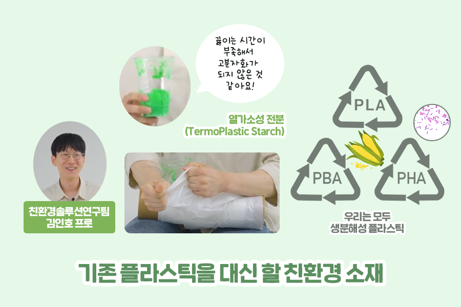 여러분이 전분으로 만든 플라스틱은 바로 ‘TPS(Termo Plastic Starch)’로 열을 가해 모양을 변형하는 열가소성 전분인데요. 친환경 소재로 각광을 받고 있는 플라스틱 대체 소재 중 하나입니다.