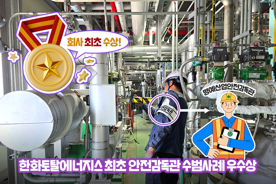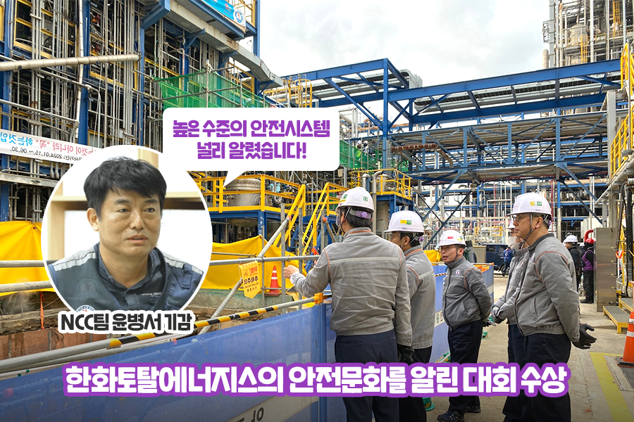 지난 7월 일산 킨텍스에서는 ‘명예산업안전감독관 수범사례 발표대회’가 열렸습니다. 각 사업장의 명예산업안전감독관이 회사의 안전 문화에 대해 소개하고 어떻게 산업 안전 재해를 방지하는지 사례를 발표하는 대회였는데요. 한화토탈에너지스에서는  NCC팀 윤병서 기감이 이 대회에서 회사 최초로 우수상을 수상했습니다. 영광의 순간, 함께 알아볼까요?