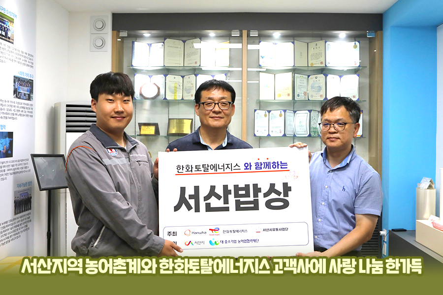 한화토탈에너지스가 매년 대·중소기업·농어업협력재단에 출연하고 있는 농어촌상생협력기금이 활용되어 올해에는 약 5천만원 상당의 김, 된장, 간장, 버섯, 쌀, 생강, 마늘, 참기름, 감자, 한과 등 서산지역 특산물을 구매했습니다.