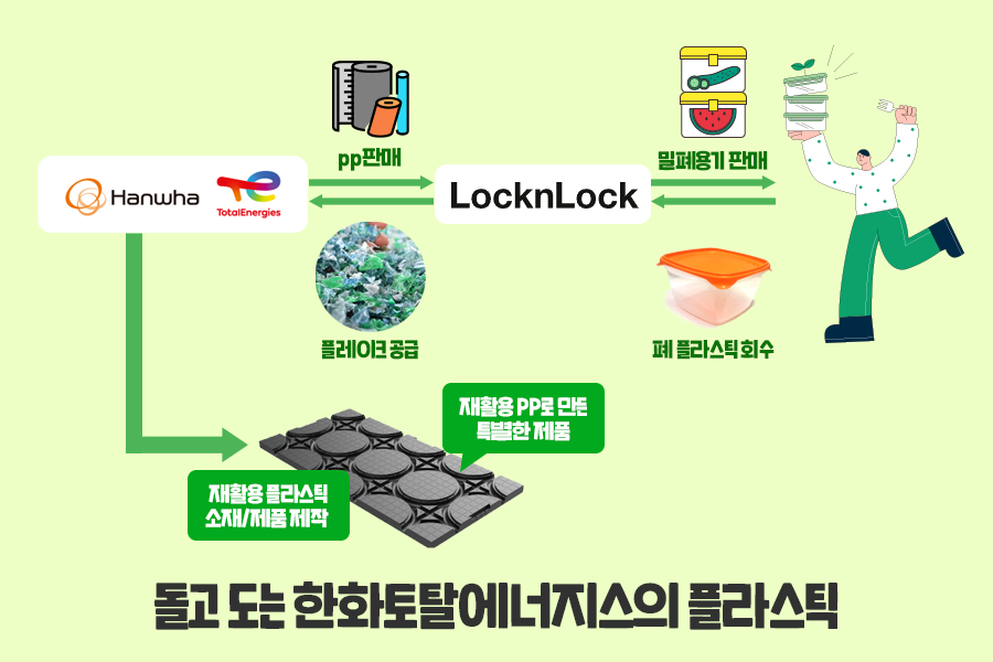 최근 많은 기업들이 ESG 경영에 발 맞춰 다양한 친환경 캠페인을 진행하고 있는데요. 특히 버려지는 폐플라스틱을 수거해 재활용하는 자원순환 활동을 많이 하고 있습니다. 한화토탈에너지스는 이러한 변화에 발 맞춰 고객사인 글로벌 생활용품 기업 ‘락앤락’과 친환경 사업을 추진합니다. 관련한 소식 들려드릴게요!