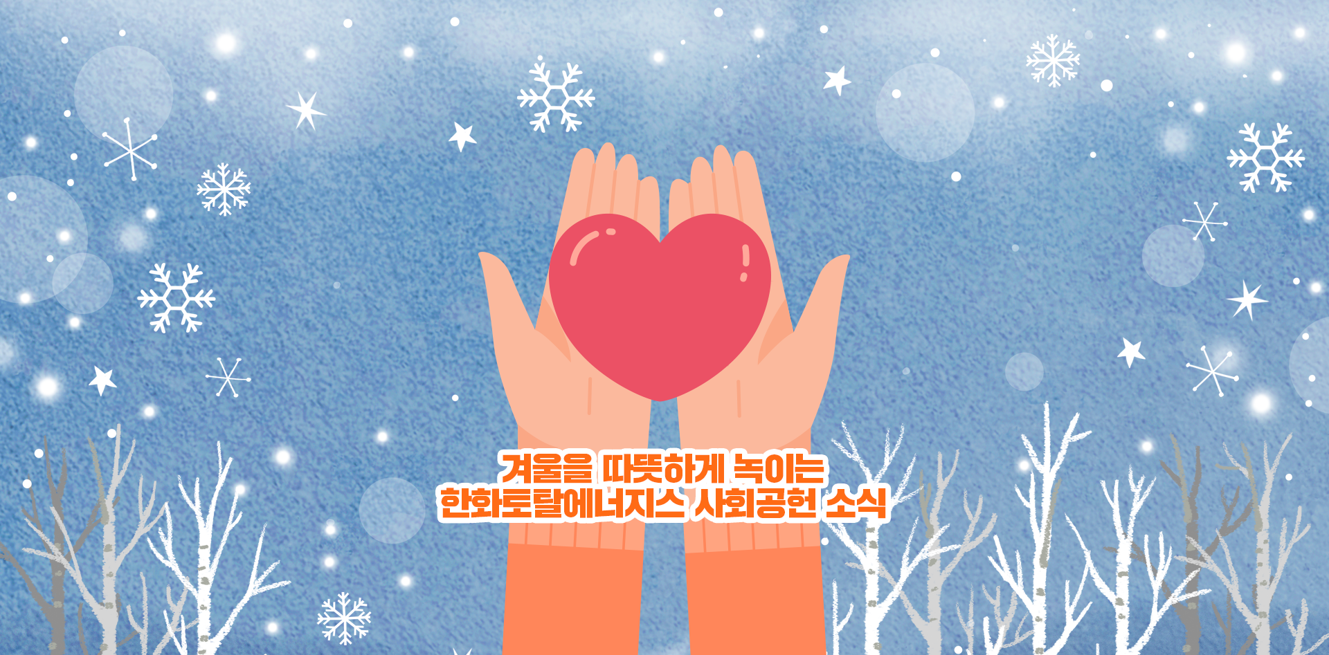 부쩍 추워진 날씨에 손발이 꽁꽁 얼고 있는 요즘입니다. 펑펑 내리는 눈은 누군가에게는 포근함이, 누군가에게는 추위가 되는데요. 오늘은 겨울을 따뜻하게 녹일 한화토탈에너지스의 사회공헌 소식을 모아보았습니다. 지난 한달 간 있었던, 따뜻한 나눔의 현장을 함께 볼까요?