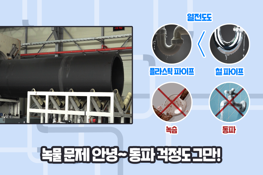 오래된 건물에서 녹물이 나온다는 기사를 보신 적이 있나요? 추운 겨울, 파이프가 동파되어 물이 역류했다는 소식은요? 지은 지 오래된 아파트에 사신다면, 익숙하실 수도 있는 일인데요. 이런 문제가 생기는 이유는 우리가 사용하는 수도관이 ‘철’로 만들어졌기 때문입니다. 그렇다면, 수도관 파이프는 플라스틱으로 만들 수 없을까요?