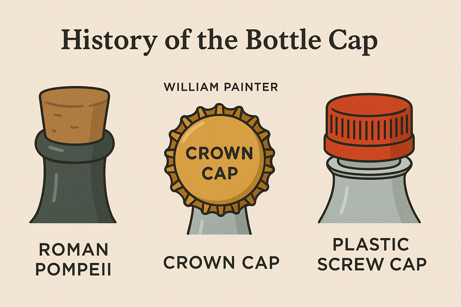 병뚜껑의 역사는 생각보다 꽤 깁니다. 고대 이탈리아 폼페이 유적에서도 병뚜껑의 흔적이 발견될 정도니까요. 하지만 지금 우리가 흔히 보는 형태의 병뚜껑을 만든 사람은 1890년대의 ‘윌리엄 페인터’라는 인물입니다.