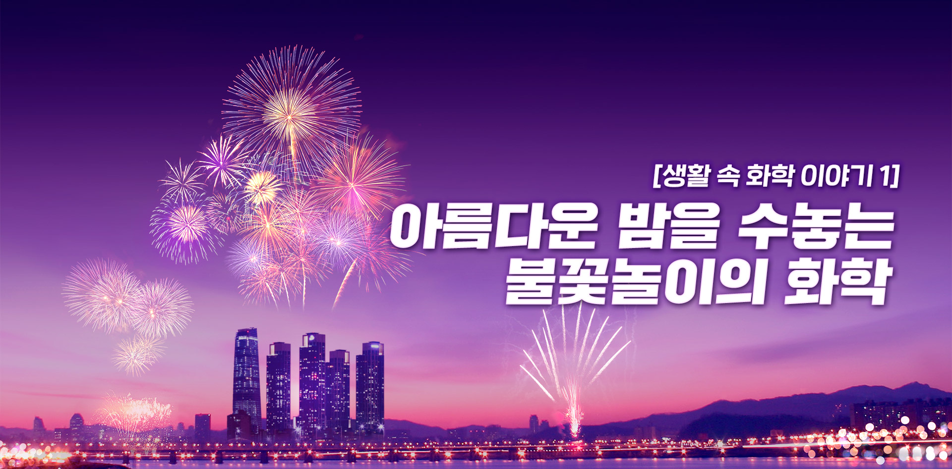 코로나 이후 다시 모일 날을 상상하면서, 오늘은 까만 밤하늘을 도화지 삼아 형형색색 그림을 그려 내는 불꽃놀이에 숨겨진 재미있는 화학 이야기를 해보려고 합니다.