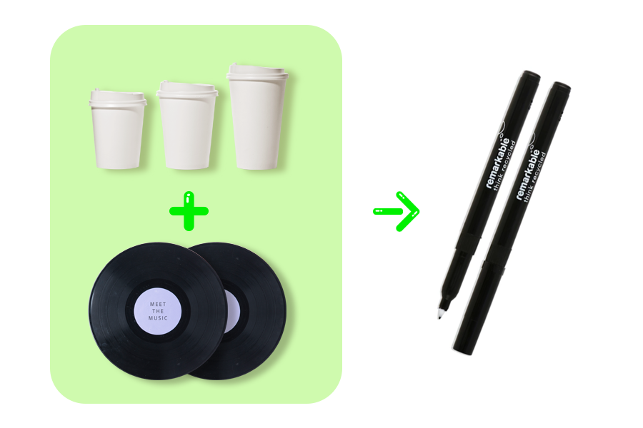 우리의 일상에서 빼놓을 수 없는 플라스틱, 다양한 플라스틱을 사용하고 있지만 그렇기 때문에 버려지는 양도 어마어마한데요. 이런 고민을 해결하고자 영국의 브랜드인 리마커블은 버려지는 일회용 컵과 레코드판을 모아 분쇄하고 재가공해 볼펜을 만들기 시작하였습니다. 원료 재가공에서 사용하는 기계 역시 재활용된 폐품으로 만들어진 공정 시스템을 사용하고 있다고 하니 참신한 아이디어가 돋보이네요. 리마커블은 플라스틱, 타이어, 종이 등 매주 10톤 정도의 폐품을 재활용하여 볼펜 외에도 연필,노트 등 다양한 제품을 만들고 있답니다.