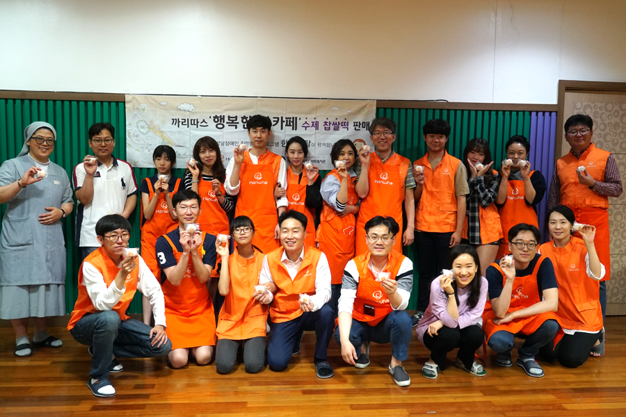 서울사무소에서는 2010년부터 찹쌀떡과 커피를 만드는 등의 직업훈련을 통해 성인발달장애인들이 경제적으로 자립할 수 있도록 돕고 있는데요. 직업훈련을 마친 장애인들에게 안정적인 일자리까지 제공할 수 있도록 ‘까리따스 늘봄 카페’도 두 곳을 열어 운영 중입니다.