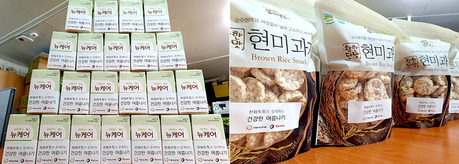 이외에도 한화토탈 서울사무소에서는 쪽방촌 주민 중 암 환자와 보호가 필요한 분들께 환자 영양식과, 서산 농산물을 이용한 간식거리를 전달했는데요. 부산영업팀에서도 해운대복지관 기역 내 취약계층을 대상으로 쌀을 지원했습니다.