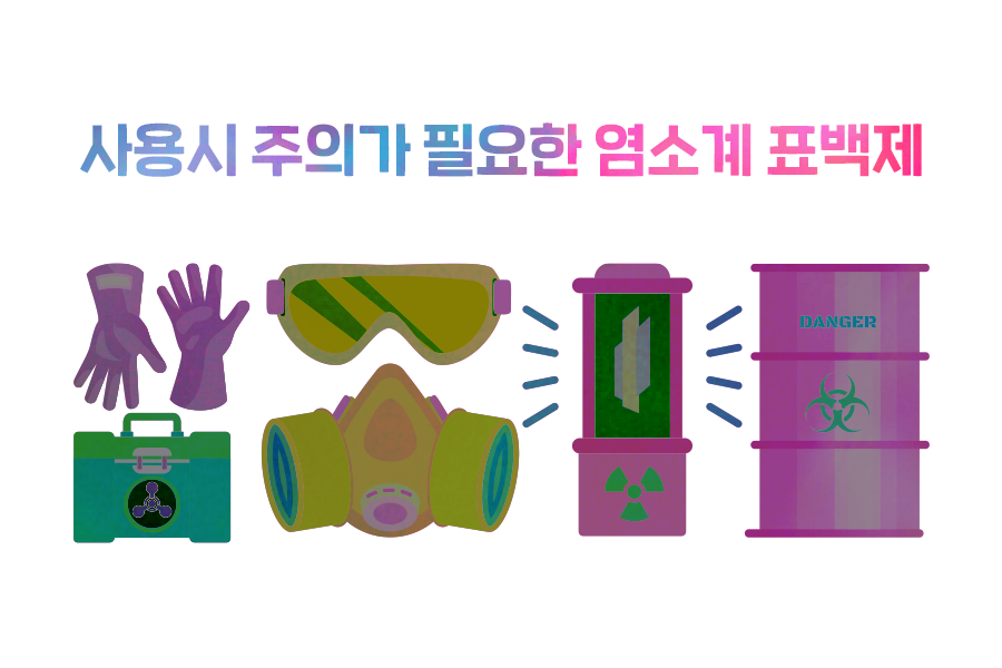 시중에 판매되고 있는 염소계 표백제는 여러 방면으로 활용도가 높아 많이 사용되고 있는데요. 하지만 염소계 표백제는 사용 시 몇 가지 주의할 점이 있습니다. 먼저, 뜨거운 물과 함께 사용하게 되면 염소 가스가 발생할 수 있어 주의해야 합니다. 그리고, 욕실세제 등 산성 세제와 염소계 표백제를 섞어 사용해도 염소 가스가 생성되니, 다른 종류의 세제를 섞어서 사용할 때 유의해야 합니다. 또한 피부에 직접 닿으면 피부 손상과 염증을 유발할 수 있으므로 조심해야 합니다!