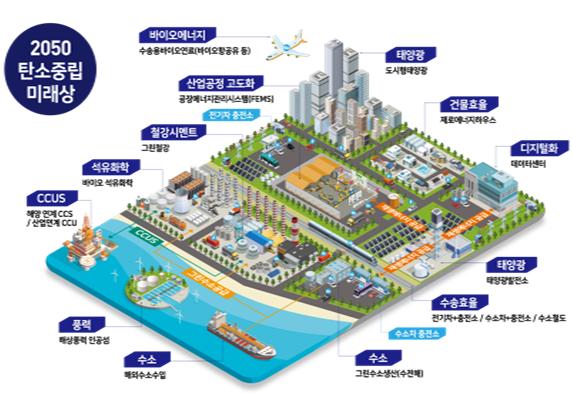 지난 9월 과기정통부가 발표한 ‘탄소중립 10대 핵심기술 개발방향’ 보고서는 우리나라가 ‘2050 탄소중립’을 달성하는 데 필요한 기술 개발 방향 내용을 담고 있습니다. 탄소중립을 이루는 데 필요한 10대 핵심 기술 분야로 △태양광·풍력 △수소 △바이오에너지 △철강·시멘트 △석유화학 △산업공정 고도화 △수송효율 △건물효율 △디지털화 △CCUS가 꼽혔는데요.