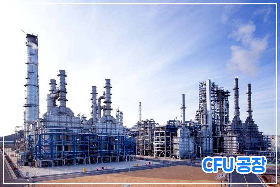 한화토탈의 CFU(Condensate Fractionation Unit) 공장은 콘덴세이트를 분해하고 가공하는 설비입니다. 콘덴세이트란 천연가스를 채굴할 때 부산물로 생산되는 휘발성 액체 탄화수소를 말합니다. 지하에 매장되어 있을 때는 기체로 존재하다가 지상으로 올라오면 압력이 낮아져 액체가 되지요.