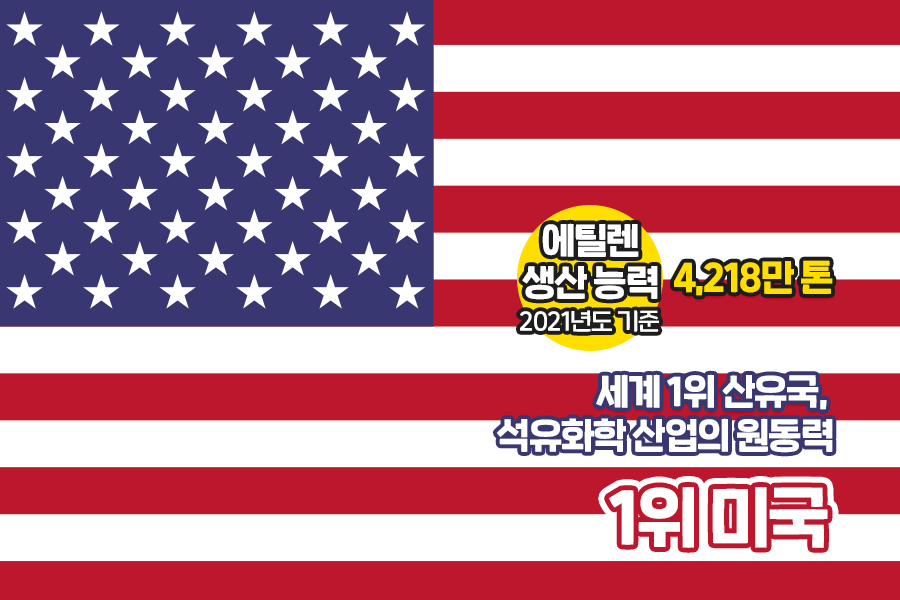 아울러 석유화학 산업은 첨단 공정 설계와 고도의 기술이 집약된 산업입니다. 이러한 연유로 세계적인 인재와 첨단 기술 그리고 막대한 자본이라는 삼박자를 고루 갖춘 미국이 1위를 차지하는 건 자연스러운 일일 수 있겠네요!