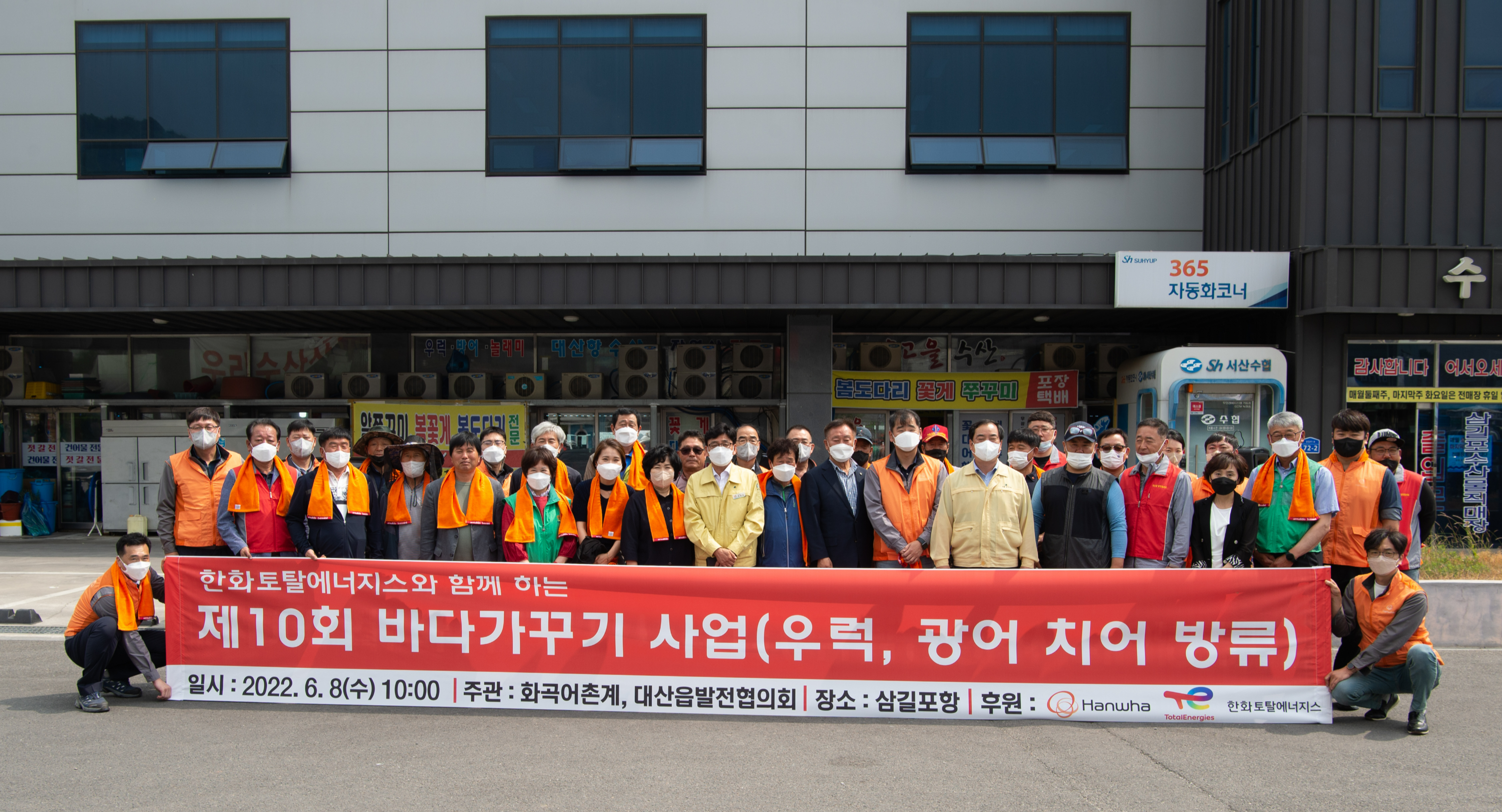 ‘바다가꾸기 행사’는 생물의 다양성을 보존하고 해양환경을 보호하기 위해 매년 한화토탈에너지스에서 공들여 진행하는 사회공헌활동입니다. 특히나 올해의 바다가꾸기는 코로나 장기화로 지친 지역사회에 작은 활력소가 되길 바라는 마음으로 참여했다고 하는데요, 앞으로도 서산의 바다지킴이, 한화토탈에너지스가 이어갈 다양한 ESG 실천 행보를 지켜봐 주세요!
