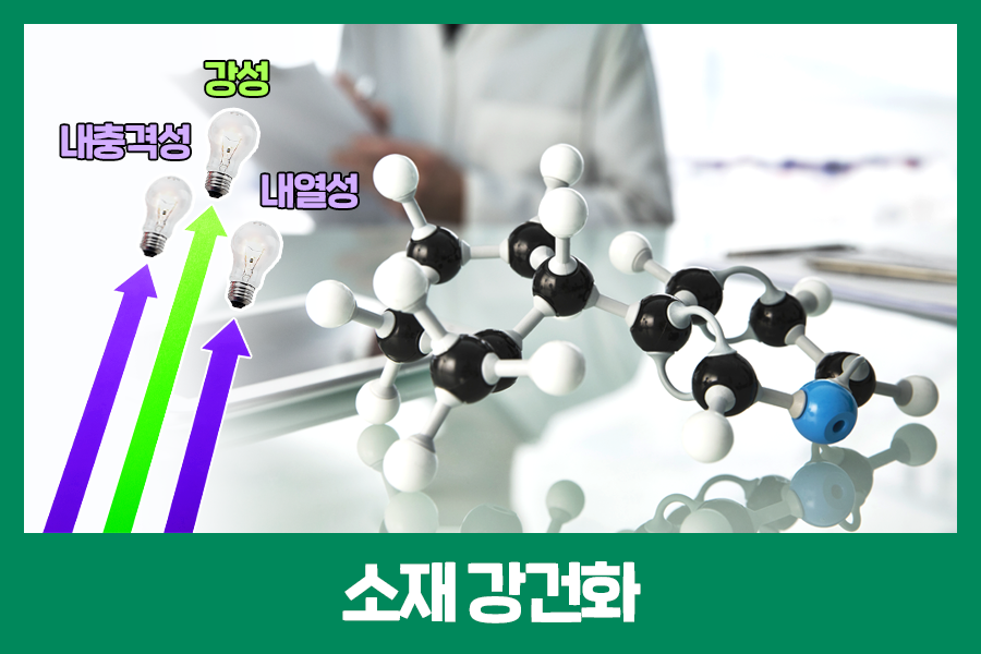 첫 번째 방법은 소재 강건화입니다. 소재 강건화란, 쉽게 말해, 좀 더 우수한 물성을 가지는 소재를 만드는 것을 의미합니다. 물성이 우수한 소재를 사용하면, 적은 양의 소재로도 기존의 제품과 동일한 성능을 보유하는 제품을 만들 수 있습니다.