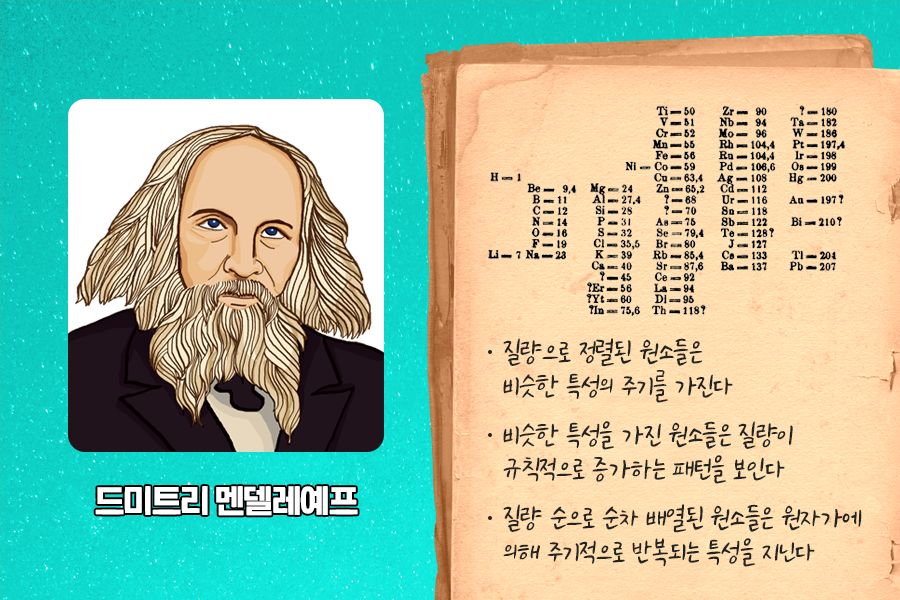 가장 합리적인 방법으로 원소 배열에 성공한 멘델레예프
