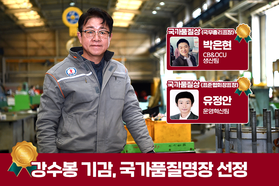 강수봉 기감: “공무 부문의 품질경영을 위한 예방보전, 정기보전 체계를 정립하고 스마트 팩토리에 필요한 스마트 시그널을 도입한 공로를 인정받아 올해 국가품질명장으로 선정되는 영예를 안았습니다. 앞으로 공장의 안전안정가동을 위해 다양한 아이디어를 업무에 접목하는 혁신활동을 이어가겠습니다.”