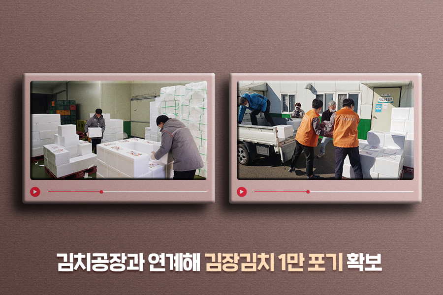 매년 진행해오던 행사였지만, 2020년 코로나 팬데믹 이후로는 함께 모여서 김장을 담그는 행사를 개최하기가 어려워졌는데요. 그래서 이후로는 김치공장과 연계해 김장김치를 확보하고 지역사회 곳곳에 전달하는 방식으로 변화되어 진행하고 있습니다.
