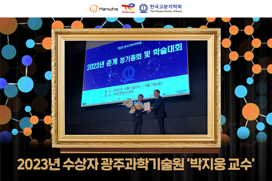 지난 6일, 대전컨벤션센터에서는 ‘2023 한국고분자학회 춘계 정기총회’가 열렸습니다. 총회에서는 학술대회와 함께 국내 고분자 과학 발전에 기여한 공로자에 대한 포상이 있었는데요. 한화토탈에너지스가 제정하고 한국고분자학회가 주관하는 한화고분자학술상의 올해 수상자는 광주과학기술원 박지웅 신소재공학부 교수였습니다.