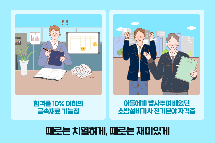 저는 정년이 몇 년 남지 않았지만, 현재에 안주하지 않고 또 다른 도전을 할 계획입니다. 기능장 개수를 10개로 늘리는 것이 새로운 목표인데요. 저의 노력과 열정이 동료들에게도 동기부여가 되어 많은 분들이 자격증 취득에 도전하셨으면 좋겠습니다. 저의 이야기 읽어주셔서 감사합니다.