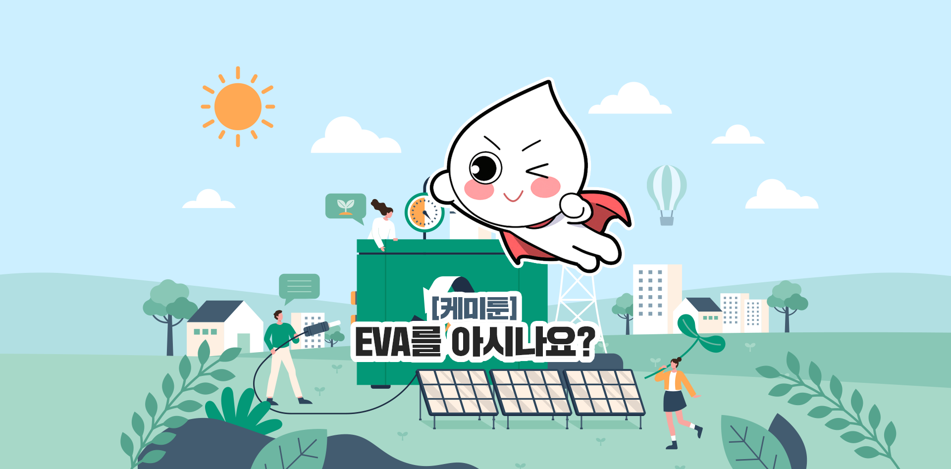 EVA 덕분에 우리는 태양광 발전으로 에너지도 얻고, 튼튼한 운동화도 신을 수 있었네요. 100% 재활용도 가능하고 친환경 소재로 쓰임이 늘어나고 있는 ‘EVA’! 세계일류상품인 한화토탈에너지스의 EVA가 앞으로도 승승장구 하길 바라며 케미툰 마치겠습니다. 다음엔 어떤 석유화학 이야기로 찾아올까요? 기대해주세요~