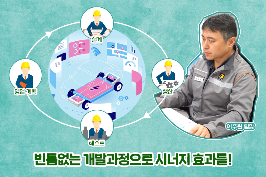 이주원 팀장: “저희가 장영실상을 수상할 수 있었던 이유는 단지 생산부문의 노력 뿐만 아니라 연구소에서 제품을 설계하고 파일럿 테스트를 거친 것은 물론 실제 제품으로 구현하고 영업에서 제품을 판매할 판로까지 확장해 계획을 하는 모든 과정에서 모든 부서와 원활한 협업이 이루어졌기 때문인 것 같습니다. 이런 과정이 더 좋은 제품 개발에 시너지 효과를 주어 장영실상을 수상할 수 있었다고 생각합니다.”