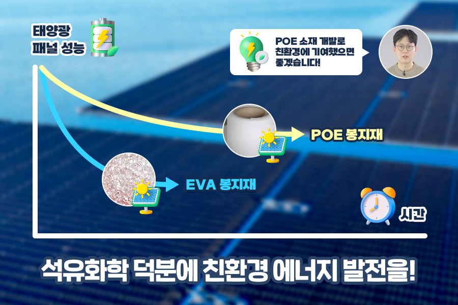 한화토탈에너지스는 태양광과 같은 친환경 에너지를 더 효율적으로 사용하기 위해 POE소재를 개발했는데요. POE 소재가 한화토탈에너지스 뿐 아니라 전 세계적으로 많이 사용되어 친환경에 크게 기여할 수 있는 계기가 되었으면 좋겠습니다.
