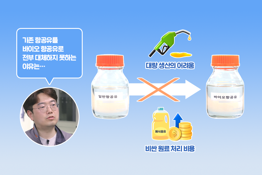 안타깝게도, 이렇게 만들어진 바이오 항공유로 기존 항공유를 완전히 대체하기는 어려운데요. 제품의 성능에는 아무 문제가 없지만, 상용화되기에는 무리가 있습니다.