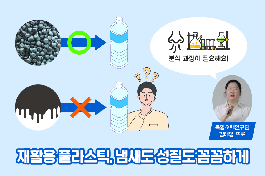 김태영 프로 : 플라스틱의 물리적 재활용은 많은 관심을 받고 있어요. 왜냐하면 유럽에서는 2030년까지 수입되는 플라스틱 소재에 일정 함량 이상의 재활용 플라스틱을 사용해야 하기 때문이죠.
